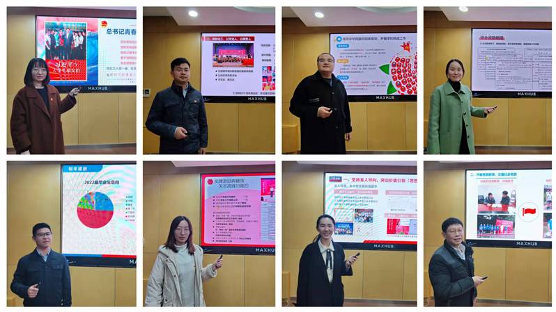 高艺霞表达了公司党委对员工工作及辅导员队伍建设的高度重视。随后,8位专职辅导员从德、智、体、美、劳“五育”融合角度,分享优秀工作经验方法。李春忠指出,在建党百年的重要节点,思政团队开展了以“礼赞新时代•百年再启航”为主题的富有特色的系列活动,为员工成长成才搭建了一系列丰富平台。同时,他寄语思政团队:新年要有新作为,希望思政团队要结合员工思想实际、专业特点,开展更具针对性、实效性的工作,为学院人才培养发挥更大的力量。朱学栋作总结讲话,他认为交流会很好的展现了辅导员昂扬向上、积极进取的精神风貌,体现了学院思政工作扎实推进、稳步向前的整体态势。